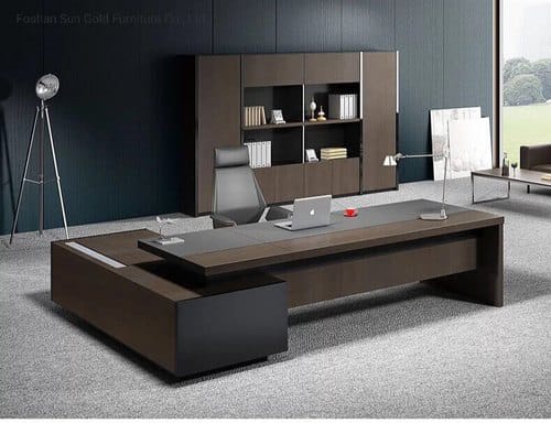 CEO Table with Side Credenza – Make to order, customized as per design and size, Tabletop made in AlNoor MDF (Matte/Tactile/High-Gloss) 32mm composite, with imported PVC edging all around, having solid MDF base underneath.