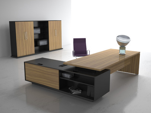 CEO Table with Side Credenza – Make to order, customized as per design and size, Tabletop made in AlNoor MDF (Matte/Tactile/High-Gloss) 32mm composite, with imported PVC edging all around, having solid MDF base underneath.